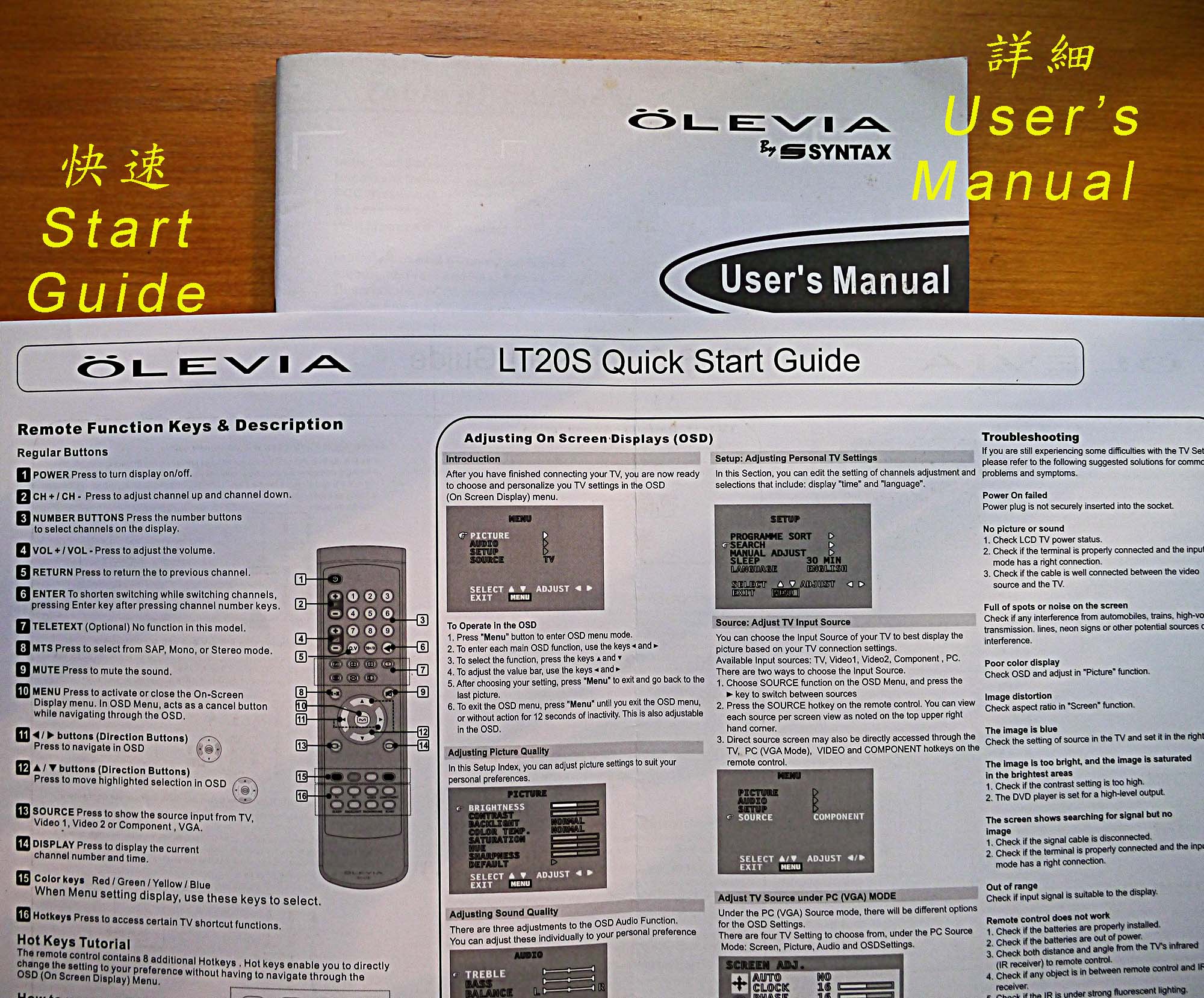 OLEVIA TV遙控器及說明書