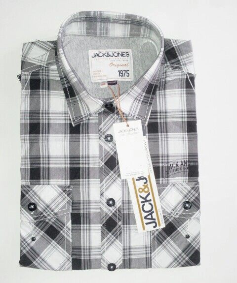 Jack & Jones 純棉灰色格仔男士長袖恤衫
