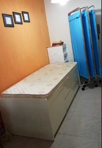 免費送出超新淨訂造的二尺半x六尺床連床褥,床下面有兩個大櫃筒,兩面有兩個櫃仔可裝被枕頭,還有布加不銹鋼架屏風, 最好全套要晒!