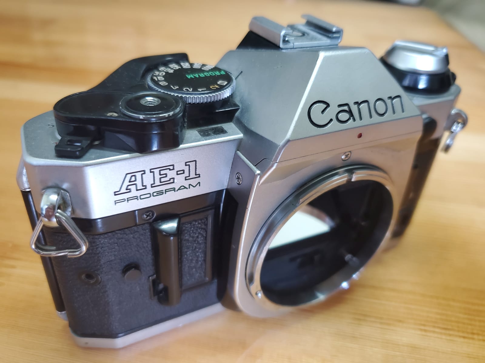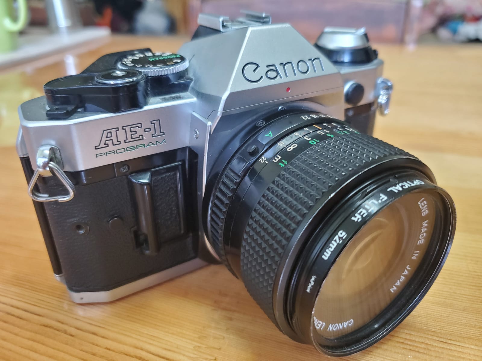 Canon AE -1 Program 古董菲林單反,放了很久,快門按不下,唔知壞乜?左下角輕微花損,不影響外觀,連原廠鏡頭+filter+揹帶。當零件機出讓。已售